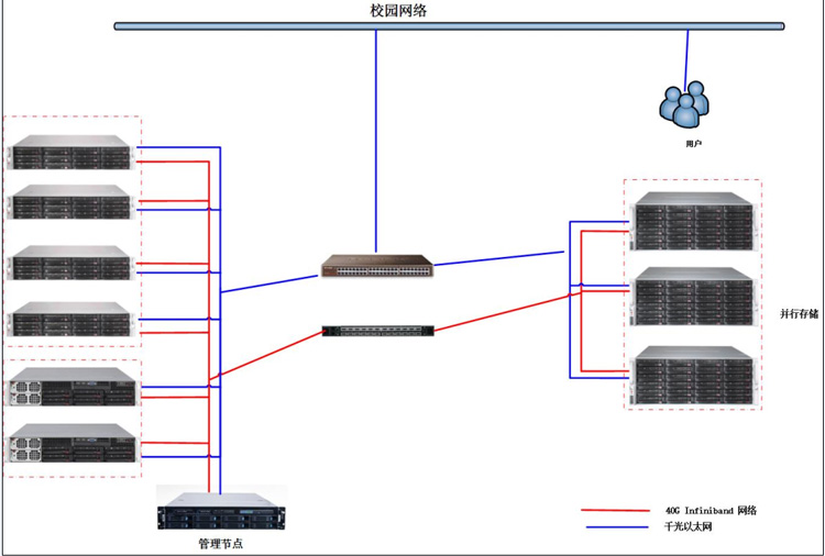 在此次項(xiàng)目中,計算服務(wù)器集群配置超云雙路服務(wù)器,Intel最新Sandy Birdge架構(gòu)CPU,通過高速InfiniBand網(wǎng)絡(luò)進(jìn)行連接,不僅能夠保證單節(jié)點(diǎn)服務(wù)器的計算性能,也能滿足高密度、可擴(kuò)展以及客戶對網(wǎng)絡(luò)帶寬的要求的集群計算性能。